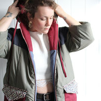 Für meine Kollektionen verwende ich ausschliesslich wiederverwendete Textilien. Aus Stoffresten, Vorhängen, Steppdecken, Zelten, Schlafsäcken, Polsterresten, Gardinen und Weiterem fertige ich Unikate an.